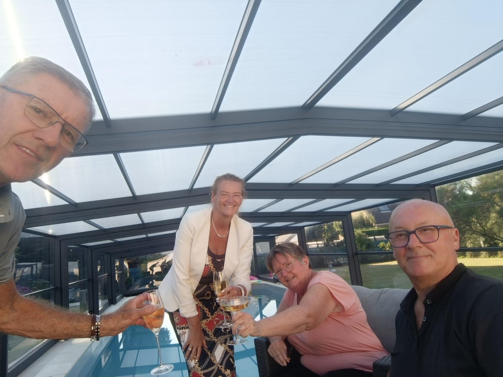 Hier soir, nous avons trinqué pour l'inauguration de la nouvelle piscine et l'abri mi-haut de clients très satisfaits de nos prestations, ils vont nous envoyer des clients.