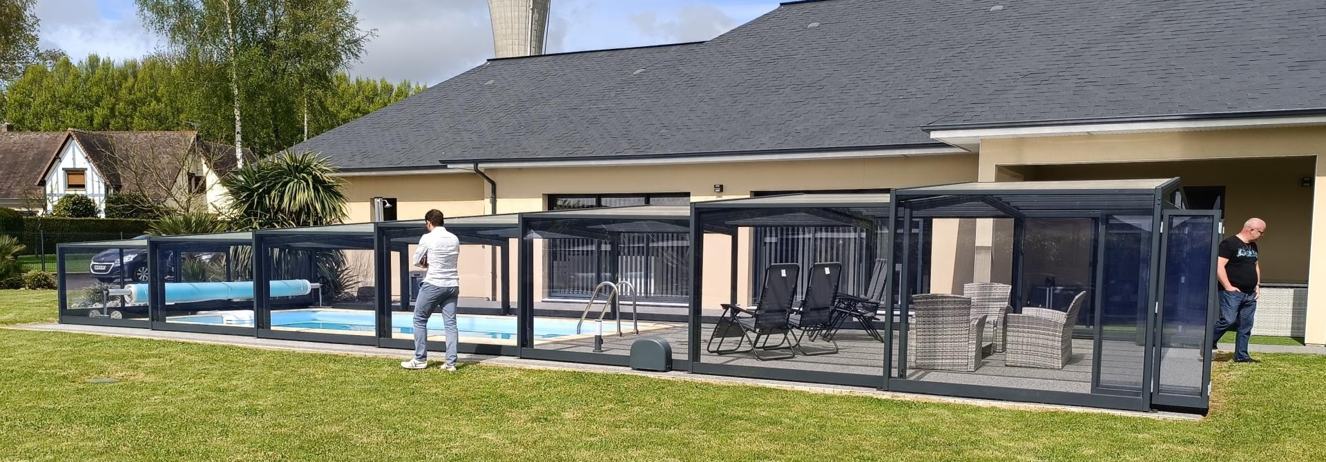 L’abri mi-haut proposé par Piscines et Abris Nord Ouest peut être fixe ou coulissant, avec ou sans motorisation, et s’adapte à toutes les configurations de bassin. Il offre une excellente protection contre les salissures, les intempéries et les variations de température, tout en garantissant un accès simple et rapide à votre piscine.